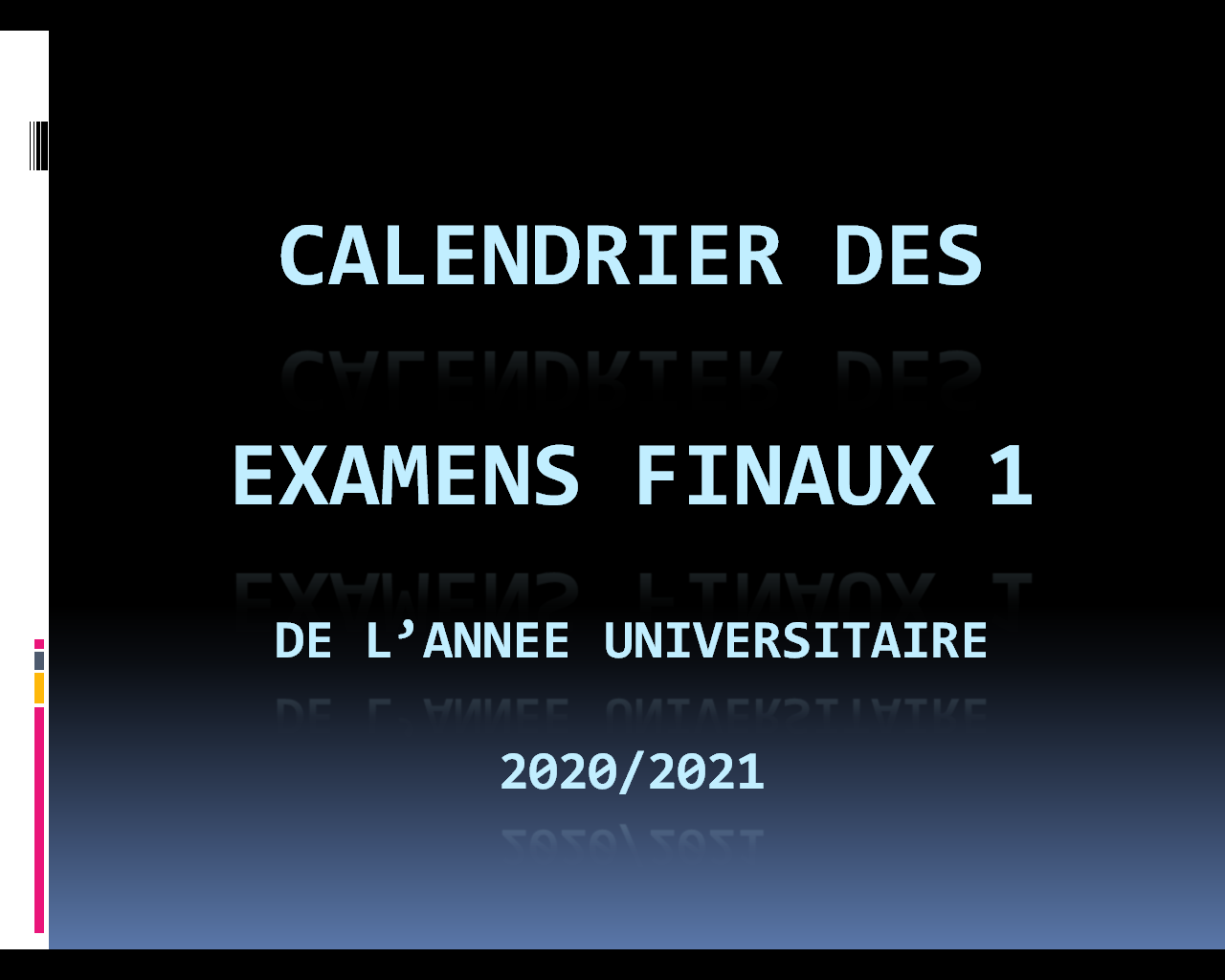CALENDRIER DES EXAMENS FINAUX 1 DE L’ANNEE UNIVERSITAIRE 2025-2026